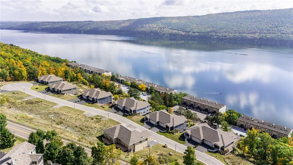 LIVE YOUR BEST CANANDAIGUA LAKE LIFE IN THIS STUNNING NEW CONSTRUCTION TOWNHOME, OFFERING BREATHTAKING VIEWS AND EXCLUSIVE ACCESS TO BRISTOL HARBOR WATERFRONT LIVING. THIS BEAUTIFULLY DESIGNED HOME FEATURES LUXURIOUS INTERIOR FINISHES WITH 250 FEET OF SHARED PRIVATE SANDY BEACH FRONTAGE AND AN EXCEPTIONAL COLLECTION OF RESORT-STYLE AMENITIES, INCLUDING BOAT SLIPS, KAYAKS, TENNIS, PICKLEBALL AND BASKETBALL COURTS, A FITNESS CENTER, CLUBHOUSE, LIBRARY, PICNIC AREAS, AND PARK SPACE. INSIDE, YOU'LL FIND 2,564 SQUARE FEET OF THOUGHTFULLY DESIGNED LIVING SPACE, HIGHLIGHTED BY A DRAMATIC CURVED FLOATING STAIRCASE, THREE SPACIOUS BEDROOMS PLUS A VERSATILE FLEX SPACE, AND THREE FULL BATHS. THE CHEF'S KITCHEN STANDS OUT WITH MARBLE COUNTERTOPS, A CUSTOM WALK-IN PANTRY, AND A PREMIUM APPLIANCE PACKAGE INCLUDING A FIVE-BURNER GAS RANGE, CUSTOM HOOD, STAINLESS STEEL MICROWAVE, EUROPEAN-STYLE BUILT-IN REFRIGERATOR, AND A WET BAR WITH WINE CHILLER. STEP OUT TO YOUR PRIVATE SECOND DECK-PERFECT FOR RELAXING OR ENTERTAINING. THE OPEN-CONCEPT LAYOUT IS IDEAL FOR HOSTING, FEATURING SOARING CATHEDRAL CEILINGS, A WALL OF GLASS SHOWCASING SPECTACULAR LAKE VIEWS, WIDE-PLANK HARDWOODS, AND A COZY GAS FIREPLACE. THE PRIMARY SUITE OFFERS A SPA-INSPIRED BATH WITH FLOATING VANITIES, A TILED SHOWER WITH MULTIPLE JETS, AND A SOAKING TUB. A SECOND BEDROOM INCLUDES ITS OWN EN-SUITE BATH. THE FIRST FLOOR ADDS FLEXIBILITY WITH AN ADDITIONAL BEDROOM OR OFFICE, FULL BATH, LAUNDRY, AND A GENEROUS FLEX SPACE IDEAL FOR GUESTS, A GAME ROOM, OR HOME THEATER. DESIGNER LIGHTING, HIGH-END FINISHES, AND CUSTOM WINDOW TREATMENTS MAKE THIS HOME TRULY MOVE-IN READY. ENERGY-EFFICIENT GEOTHERMAL HEATING AND COOLING, ALONG WITH BRISTOL HARBOR UTILITIES, ENSURE LOW MAINTENANCE. ENJOY THE FINGER LAKES LIFESTYLE WITH BOATING, DINING, CONCERTS, WINERIES, GOLF, SKIING, AND HIKING JUST MINUTES AWAY.