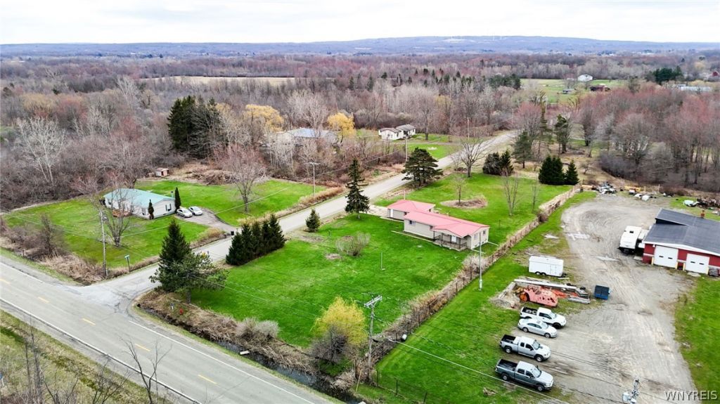 Great 3 bedroom ranch on lush 1 acre lot! Why rent when you can own for less? Enjoy single story living in this cozy home, ready for your personal touches! Open floor plan features spacious LR w beamed cathedral ceilings and big windows for lots of natural light. Kitchen with breakfast bar and formal dining room (currently plumbed for 1st flr laundry). Front door leads to huge covered 8x23 concrete porch. New windows throughout entire house. Updated bath with Corian countertop vanity, brand new toilet and walk in shower. New steel roof and vinyl siding 2023. Brand new high efficiency forced air furnace and hot water tank April 2026. BONUS - stay nice and cool on those hot summer days with central air. Huge 24 x 44 partially finished basement with 7' ceilings could be great rec room, playroom or storage! 2nd gas stove in basement and laundry hookups. All big ticket items and mechanics have been done for you, move right in! 2 car detached garage, all on a beautiful 1 acre corner lot! Flowering trees and landscaping. Scenic quiet country setting while still close to all amenities. 5 miles to Walmart and the I-90 entrance. 5 minutes to beaches and Chadwick Bay Marina. Wineries, restaurants, eateries, shopping! Low taxes! Showings begin 4/13 at 3PM, offers due Mon 4/20 by 3pm.