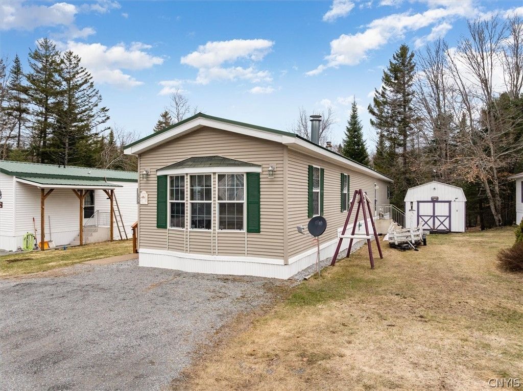 RARE OPPORTUNITY IN OLD FORGE - 3 Bedroom, 2 bath home located in a popular park close to restaurants, lakes, beach, and snowmobile trails. Sunken living room features a wood burning fireplace. Great primary or vacation home. Shed fits two snowmobiles. Appliances, basic furniture, and generator included. Reasonable lot rent and no property or school taxes. $184,900.