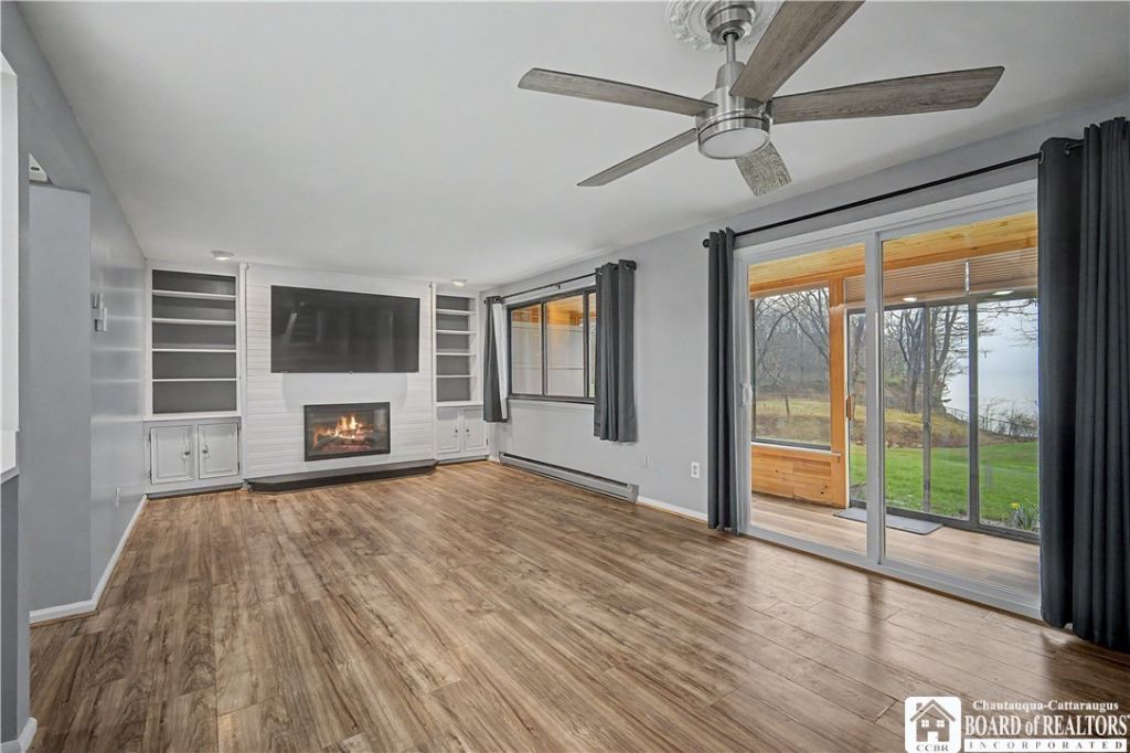 Welcome to this desirable ground-floor, two-bedroom, two-bath unit in the highly sought-after Edgewater community. This beautifully maintained home has been recently updated and features new flooring throughout, an updated kitchen complete with stainless steel appliances, Quartz countertops and stackable laundry for added convenience. Designed with both comfort and functionality in mind, the unit also includes pull-down Murphy beds-perfect for maximizing space while comfortably accommodating multiple guests. Enjoy one of the best lake views in the complex right from your unit. The HOA includes cable & internet, trash pickup, year-round grounds maintenance, and use of the swimming pool, tennis courts, private beach cove, clubhouse, fitness center, picnic areas, community garden, butterfly garden, dog park, pond, and 2,500 feet of Lake Erie waterfront. Bonus parking area for your boat, trailer, or extra vehicle. Ideally located just minutes from local wineries, downtown Westfield, and more, this unit offers both convenience and lifestyle.