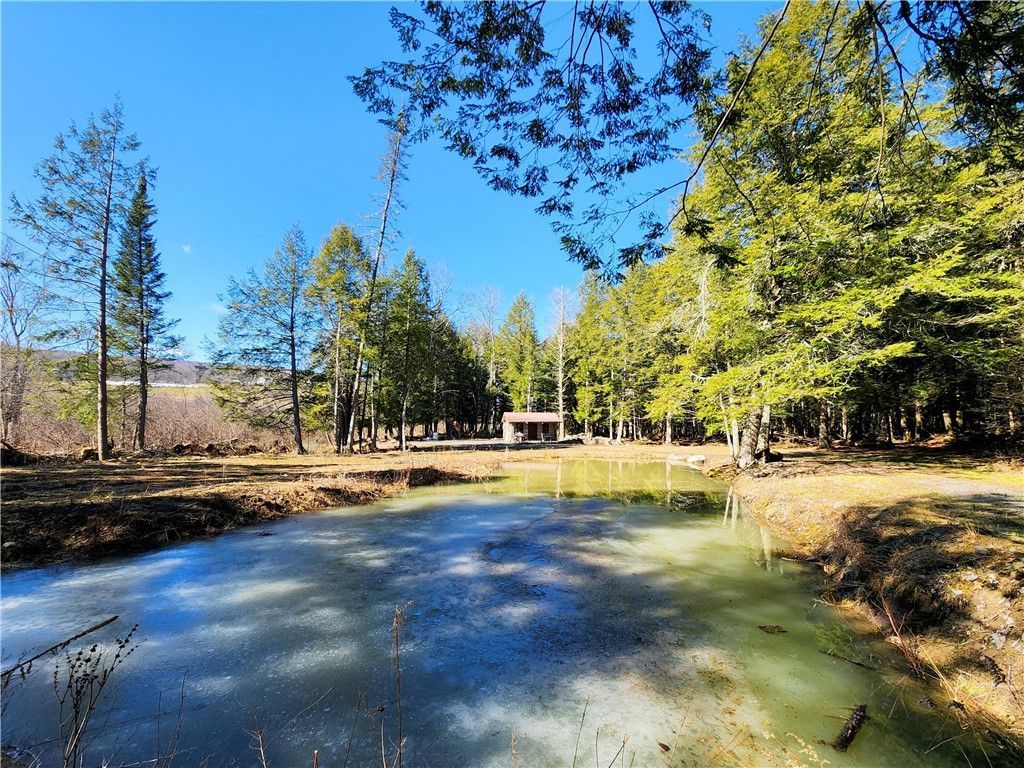 Discover nearly 11 Acres of serene Upstate New York countryside just minutes from Cooperstown. This beautiful parcel borders along the meandering Fly Creek and offers 650+ feet of road frontage, an extensive driveway, and a spring-fed pond. A small but quite useful hand-built cabin sits privately in a central clearing, surrounded by mature woods and set up for generator or solar power-an ideal off-grid retreat. With a blend of open space, wooded privacy, and natural water features, this property is perfect for recreation, a weekend getaway, or future development.