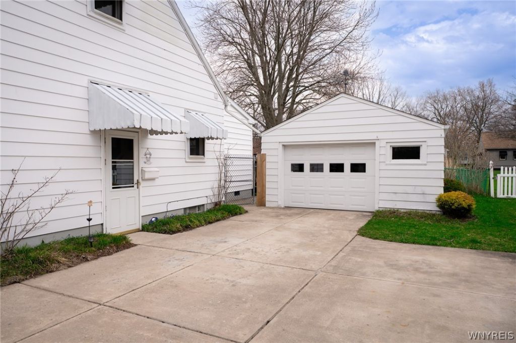 Charming Cape Cod in North Tonawanda offering a bright and airy feel with a warm, inviting layout and thoughtful updates throughout. This well maintained home features an updated kitchen (2026) with modern finishes, along with comfortable living spaces that feel open yet cozy and make it easy to settle in. The great room showcases a cathedral ceiling, adding to the open feel and natural light, while the first floor offers two bedrooms and a full bathroom for convenient living, and the second floor features one large, spacious bedroom with plenty of storage. The home has been carefully updated over time, including a new house roof (2023), hot water tank (2025), and updated electrical service, giving added peace of mind to the next owner, along with additional improvements such as newer windows, copper plumbing, and mechanical updates that enhance overall efficiency and value. The basement provides excellent additional space with a partially finished area perfect for a rec room and a separate section ideal for a workshop, hobby space, or work area. Step outside to enjoy a fully fenced yard that provides privacy and room for pets or gatherings, along with a freshly re stained deck (2024) and a hot tub creating a great space for relaxing or entertaining. A detached one and a half car garage and shed add even more convenience and storage. Ideally located in a conveniently located and walkable area - just steps to the intermediate school and close to shopping, restaurants, and everyday amenities, as well as near the North Tonawanda Farmers Market and Gratwick Riverside Park with scenic walking paths. This home offers a perfect blend of classic Cape Cod charm, meaningful updates, functional space, and a location that makes daily living easy and enjoyable, making it a strong option for buyers looking for comfort, convenience, and move in ready appeal.