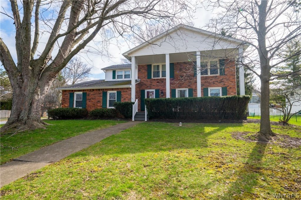 Perfectly positioned on a prominent corner lot in the heart of Amherst, this exceptional home offers a rare opportunity to own within the highly coveted Williamsville School District. From the moment you arrive, the expansive front porch creates a warm and inviting first impression-an ideal place to enjoy quiet mornings or unwind in the evening. Inside, the home unfolds with an impressive sense of space and versatility. The expansive living room is flooded with natural light and provides an elegant yet comfortable setting for both everyday living and entertaining. A generously sized formal dining room adds a touch of sophistication, perfect for hosting gatherings or holiday meals. The thoughtfully designed layout flows seamlessly into the open kitchen, offering both functionality and connection-ideal for modern living. Step outside to your own private retreat. The fully fenced yard paired with an oversized patio creates a serene outdoor oasis, perfectly suited for entertaining, relaxing, or enjoying warm summer days in complete privacy. The lower level offers a partially finished basement with endless potential-whether you envision a home theater, fitness space, or additional living area, the opportunity is yours to create. Upstairs, four well-appointed bedrooms provide comfort and flexibility, highlighted by a truly expansive primary suite featuring remarkable closet space rarely found at this price point Recent mechanical updates, including a brand new sump pump and water tank, provide added peace of mind, while the home's solid overall condition speaks to pride of ownership throughout. Combining space, location, thoughtful layout, and exceptional value, this is a home that stands out in today's market-offering both immediate comfort and long-term potential in one of Amherst's most desirable settings. Virtual tour is available.
