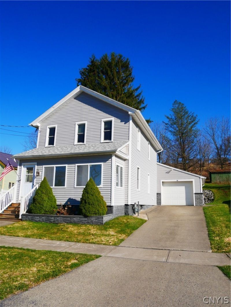 Discover the charm of this beautifully update village home featuring many recent improvements including roof, siding, windows, bath and more! Start your mornings with a cup of coffee on the inviting three season porch, the main level boasts a spacious living room, modern eat-in kitchen, updated bath, convenient laundry and a welcoming family room. Upstairs you'll find 2-3 bedrooms with flexible space perfect for a home office or den. The oversized garage offers plenty of parking space plus room for your workshop or hobbies and when the day is done unwind in the hot tub overlooking the beautiful backyard! Located within walking distance to all of the amenities the Village has to offer.