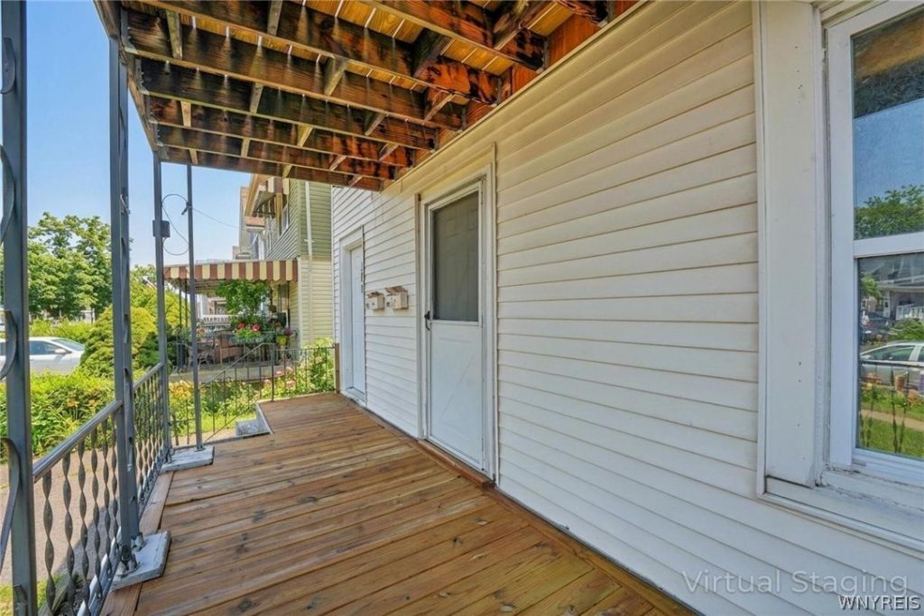 Open house Wednesday 4/15 from 5-7pm. Imagine a large double in demand North Buffalo on a private but easily reachable street! Short distance to the amenity packed Hertel Ave. Strip: retail & restaurants galore! Great rental returns! MAJOR IMPROVEMENTS: NEWER ROOF, GARAGE SIDING REPLACED, UPPER & LOWER DEKS TORN OFF AND REPLACED W/ PRESSURE TREATED WEATHER RESISTANT WOOD, NEWER COPPER PIPES UNDER 1ST FLOOR! Dry basement with no foundation issues. Enter front door to foyer 1st flat w/large LR to expansive DR. Remodeled kitchen w/room for dining space. Be prepared to witness incredibly redone bath Totally gutted. Everything replaced all ceramic tile tub surround, lovely new vanity, light fixtures & comfort toilet. This bath could be found in any expensive home. Second floor flat mirror image of first. Original hardwood flooring under some of the carpeting (you can see it in some of the closets) In the three years owner has spent upwards to $35,000. This home is in compliance with The City of Buffalo for the next two years from basement to roof. Generous sized fenced in yard and 2 car garage completes this high profit package with purse appeal! Also includes 2 stoves, 2 refrigerators, 1 washer and 1dryer. An investment for home & income or just income! Buyer to accept existing survey with affidavit signed by the sellers that nothing has changed. Some photos are virtually staged. Offers to be reviewed as they come in.