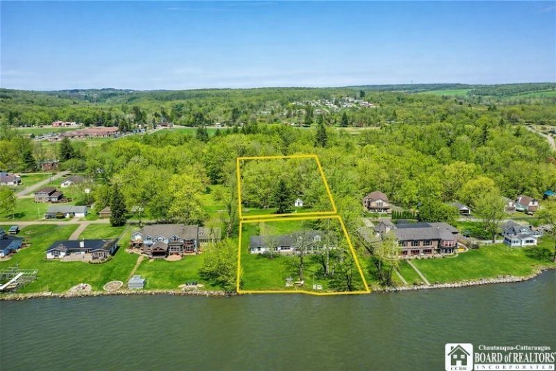 4 bedroom, 4 bath home set on a quiet street with an impressive 150 ft of lakefront. With 1.36 acres of scenic property, mature trees and professional landscaping, this 'turnkey property offers the space, setting, and layout buyers look for in today's lake market. A large first-floor en-suite with lake views provides convenience and flexibility for single-level living or guests. The large, gourmet kitchen is designed for everyday living and entertaining, featuring granite countertops/island, 3 ovens (including a Dacor 6-burner cooktop/griddle), 2 dishwashers, a jumbo refrigerator/freezer, custom cabinetry, radiant heated floors, a pantry, large bar area with 2 wine refrigerators, and coffee bar with under counter frig. Directly off the kitchen is a stone/rock garden area ideal for expanded entertaining or a morning coffee. The home offers a spacious dining room and great room and a bonus sun room, all with walls of windows to enjoy lake views. Architectural details add character throughout, while the gas fireplace creates a comfortable focal point for year-round pleasure. The home has been meticulously cared for including 4 bathroom renovations, hardwood flooring, custom painting, and designer furniture, barn doors, and lighting, making it move-in ready. Outdoor living is where this property shines. A large stamped-concrete porch, an expansive blue-stone patio, and a stone fire-pit, provide ample space for entertaining or relaxing. The lake beckons, and is accessible via an extended aluminum dock with an automatic boat lift and aluminum bench. Additional features include an attached 2 car garage, plus a detached garage and shed-ideal for storing lake gear, tools, or recreational equipment. A large aluminum-fenced garden adds to the property. Take a 2 minute walk to Ellery Town Park's playground, tennis/pickleball, volleyball, and covered pavilions. Located just minutes from Bemus Point, you're near shops, restaurants, and all Chautaqua Lake offers, while still enjoying a quieter setting. A lakefront gem- views, space, and location ready for year-round or seasonal enjoyment.