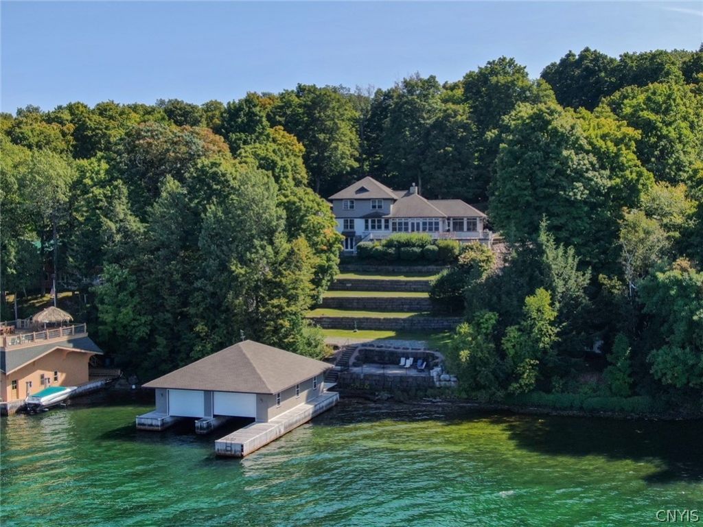 Experience the beauty of river living in this exceptional custom-built home situated on 2.6 acres of manicured grounds, complete with mature trees and serene water views & sunsets. Designed for both relaxation & entertaining, this property offers a combination of elegance, privacy and functionality. The home features 5 bedrooms, 2 baths, first floor master suite, hardwood floors, vaulted ceilings, custom cabinetry, open floor plan, and Marvin windows that bring in natural light & frame breathtaking views of the river. Enjoy the quiet mornings & gorgeous sunsets from the screened-in porch or one of the stone patios, perfect for ship viewing & entertaining. Additional highlights include a 2-stall garage with living quarters above it. And for you boaters you will love the incredible boathouse (37x44) with 2 electric boat hoists, deep water dockage for larger boats. This is truly a rare opportunity to own one of the finest homes in the 1000 Islands, located only 3 miles to the village of Clayton. Call now for details & private showing.