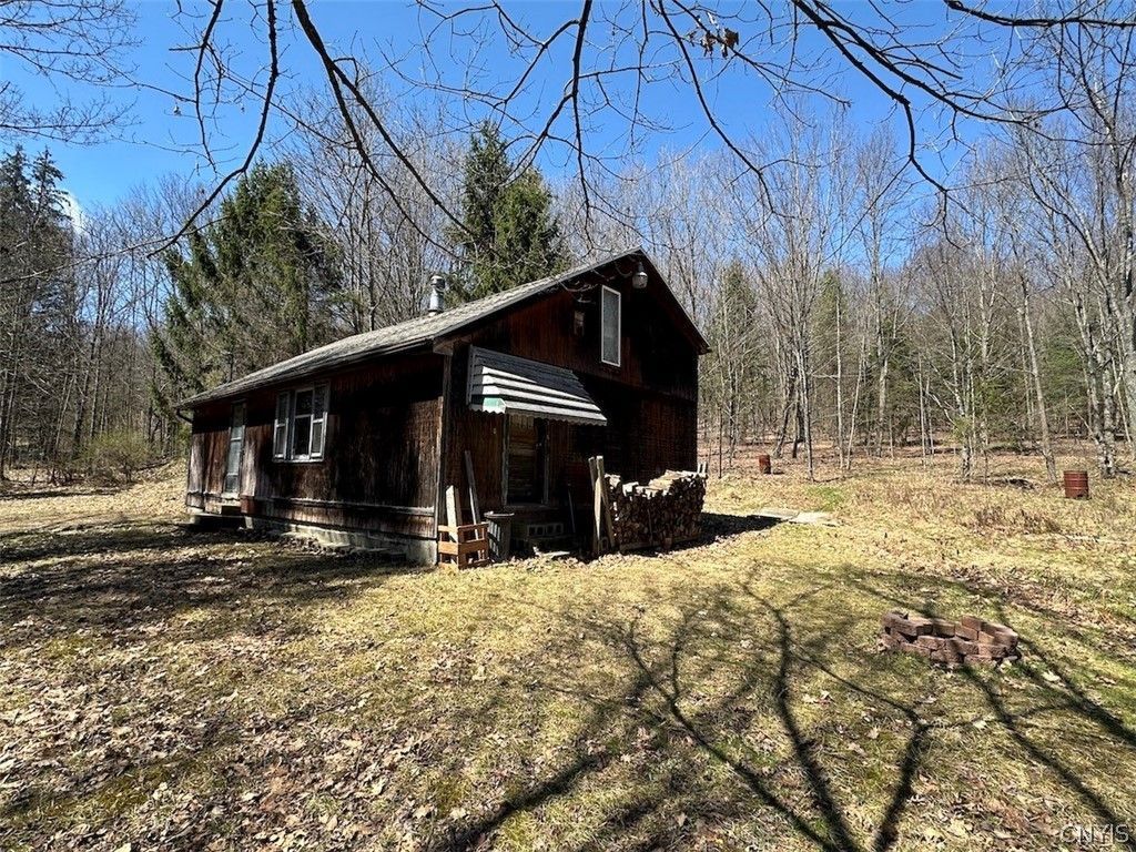This 3 bedroom hunting cabin with loft is situated on 6.9 acres of mostly wooded land on a dead end road in Friendship NY, Allegany County. The cabin features an open living and dining area with a wood stove for heat, kitchen space, and multiple sleeping areas including three bedrooms and a loft. Electric service is already connected. The property is being sold as-is and includes the furnishings currently in the cabin allowing it to be used immediately as a hunting camp or recreational getaway. The 6.9 acres consist of mature woods with a mix of hardwoods and evergreens and gently sloping terrain that provides good wildlife habitat and natural cover. Three tree stands are already in place and will convey with the sale. There is currently no water or septic system on the property. Total annual taxes are $1,667.11. Surface rights only convey. Property is being sold as-is, cash only. This property is located approximately 10 minutes from Friendship, about 20 minutes from Cuba, Cuba Lake and Seneca Allegany Resort and Casino, and approximately 90 minutes from Buffalo.