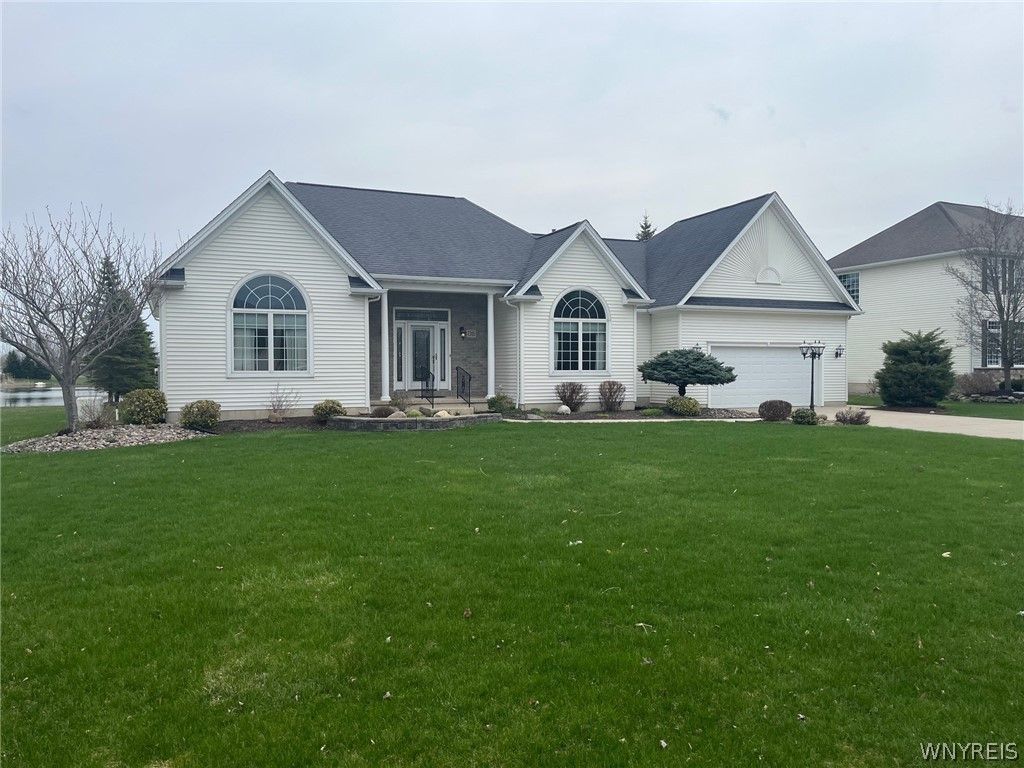 Welcome to Timber Lakes and this beautifully maintained 2218sq ft ranch offering comfort, space and scenic pond views. Featuring 3 bedrooms and 2.5 baths, this bright and airy home showcases cathedral ceilings, abundant natural light and a cozy gas fireplace. A welcoming entry foyer leads into the main living space, the kitchen offers granite counter tops, double oven and pantry while the backyard offers peaceful water views, a large concrete patio and an awning-perfect for shaded outdoor entertaining and relaxing. Additional highlights include a 2.5 car garage with epoxy flooring, epoxy front walk way for added curb appeal and a huge basement with endless potential. Major updates include a sump with water back up, endless hot water tank, whole home generator and so much more. Complete with a lawn sprinkler system, this home combines thoughtful upgrades with a beautiful setting, Don't miss it! Seller reserves the right to set an offer deadline. OPEN HOUSES Saturday 4/18 12:00-2:00pm and Sunday 4/19 1:00-3:00pm