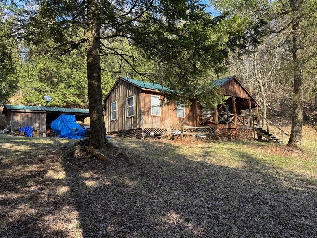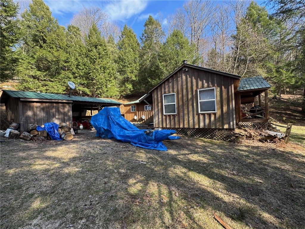 46.41 Acres with cabin located in the Otsego County town of South Edmeston. The cabin offers a kitchen, dining room, living room, two bathrooms, and a large bunk room that sleeps up to eight comfortable. Running water from a drilled well, electric and propane powered lights, stove and refrigerator and generator shed. Tree stands and roads throughout property, this is Big Buck Whitetail deer country, ultimate hunting paradise.